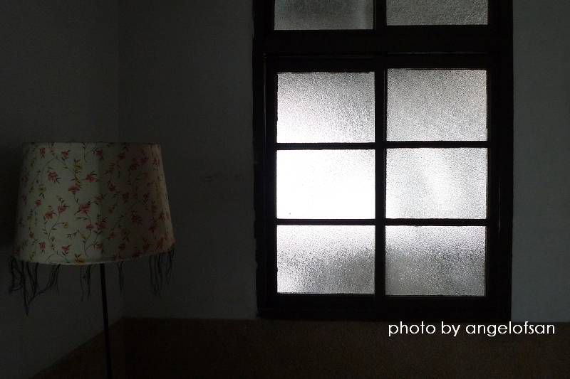 這天晚上沒有客人入住,於是講解也不急著結束,不小心過了正午,卻遇到很迷人的光束射入。小五說因為左右建築相鄰,午後一至二點才有如此光線,客人沒住個兩天是無法見到的。