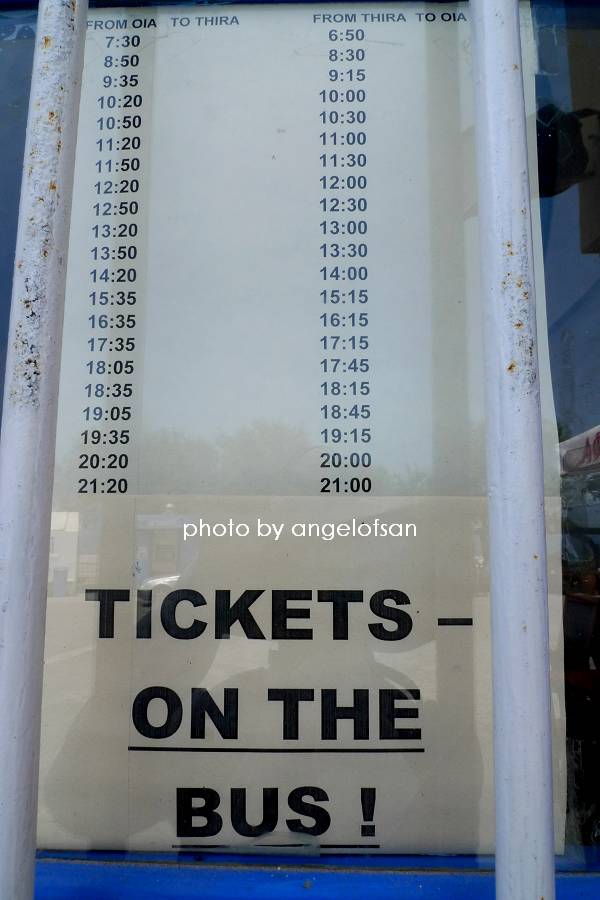 公車時刻表在聖托里尼巴士官網上也有,不過還是貼圖給有需要的朋友參考,路線只有一條,就是前往費拉而已,班次很多也相當準時。注意到公告了嗎?!搭公車不用事先購票,在車上會有專人販售啦。