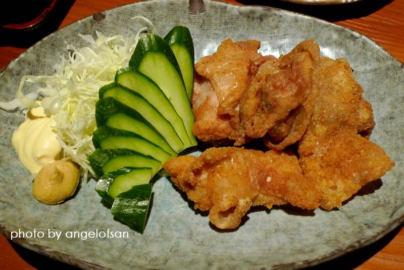 唐揚雞塊(招待),香酥的外皮金黃誘人,輕輕咬下就有肉汁噴出,放涼了也不顯油氣,非常開胃的一道炸物。
