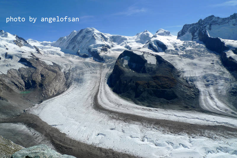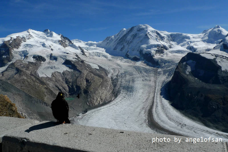 一踏出康娜葛德觀景臺月台,不禁要大呼『實在太美了』,多條冰川匯集又有群山環伺,搭配晴朗無雲可詳觀稜線的馬特洪峰,果真是天時地利人和的絕佳時機。
