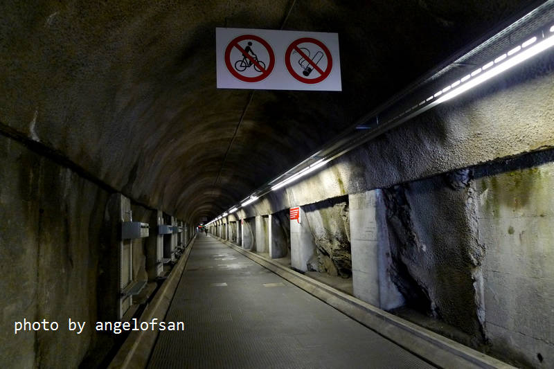 3分鐘後,屁股還沒坐熱,就已到達觀景台。可以選擇由這隧道往萊伊湖,或者坐電梯經過附設餐廳也行。