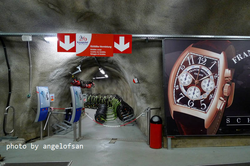 前往史尼加觀景台(Sunnegga Paradise)的地底纜車站,全程在山壁中行駛,只需費時3分鐘,即可扺達目的地。