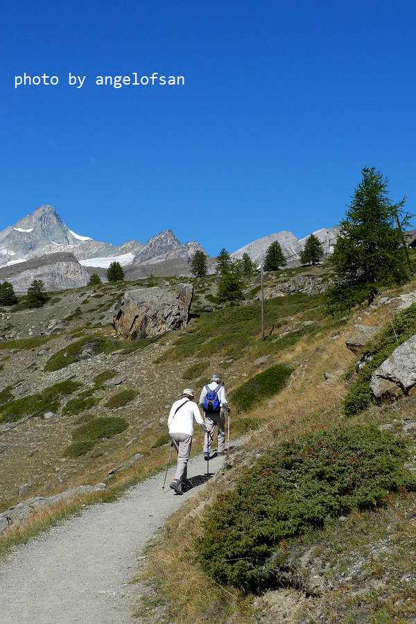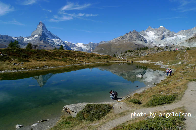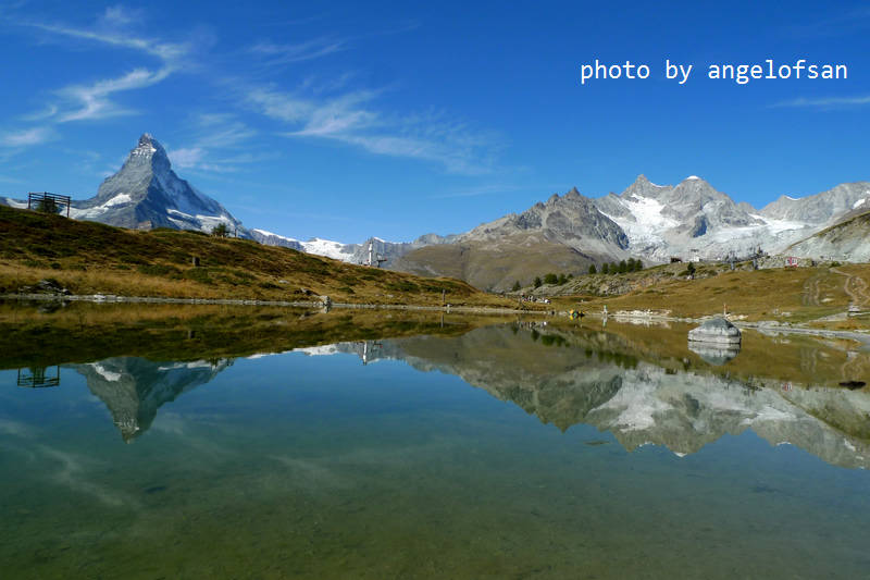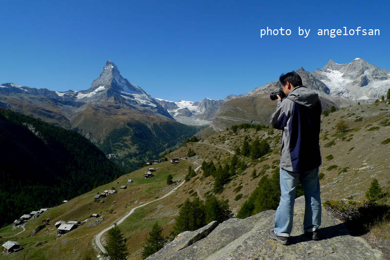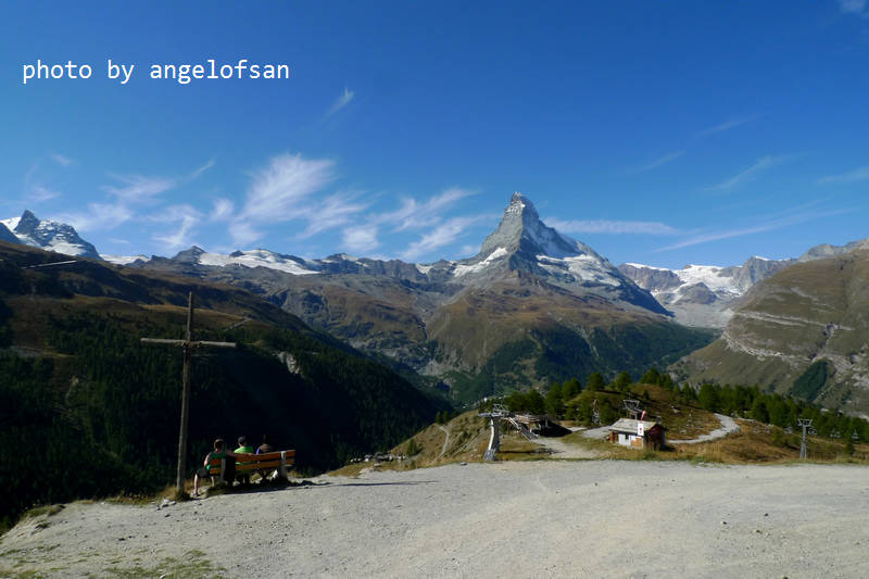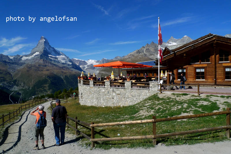今日是個出門健行的好天氣,日光和煦秋風送爽,馬特洪峰陵線清晰可見,能預期萊伊湖(Leisee)倒映雪白山峰的美麗景象,帶著雀躍心情和休息養生後的強健雙腿,準備在開闊的山林原野間探訪策馬特之美。
