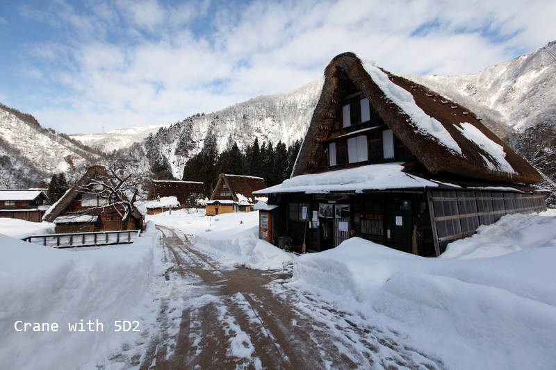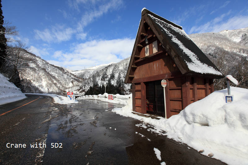 接著要逛逛菅沼,研究觀光案內所拿到的地圖顯示,若是勤快一點,菅沼與合掌之里一小時之內就可以走完。不過大概天冷加懶惰因子作祟,搭電梯去展望台晃一圈,捨棄了與合掌之里相通的隧道,剩餘的時間全在此,彷彿整座小鎮就是自家庭院,巡田水般自在地逛大街。