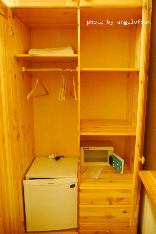 入門後等待我們的是位年輕可愛的員工妹妹,英文不太流暢的她拿著小抄很認真地介紹環境和入住需知。原本在e-mail往返間,為了邀請函一事對民宿信心指數低落,在看了房間和親切接待後,頓時將先前不愉快的記憶抛開,也慶幸沒有因此而改換別間民宿。